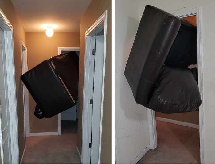 8. A lakótársammal megpróbáltuk a kanapét bevinni a nappaliba, de annyira beragadt az ajtóban, hogy azóta meg sem bírjuk mozdítani. Azt hiszem, hogy meg kell tanulnunk együtt élni a helyzettel.