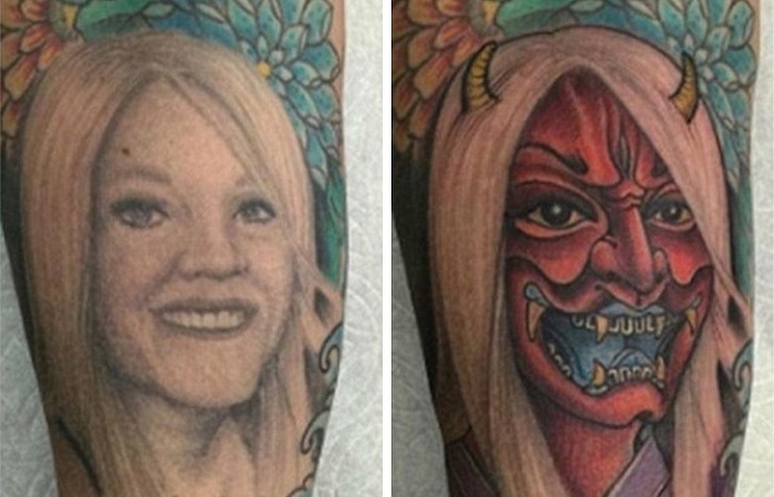1. Miután az egyik barátom elvált a feleségétől, és kicsit átalakíttatta a volt feleségét ábrázoló tetoválását: