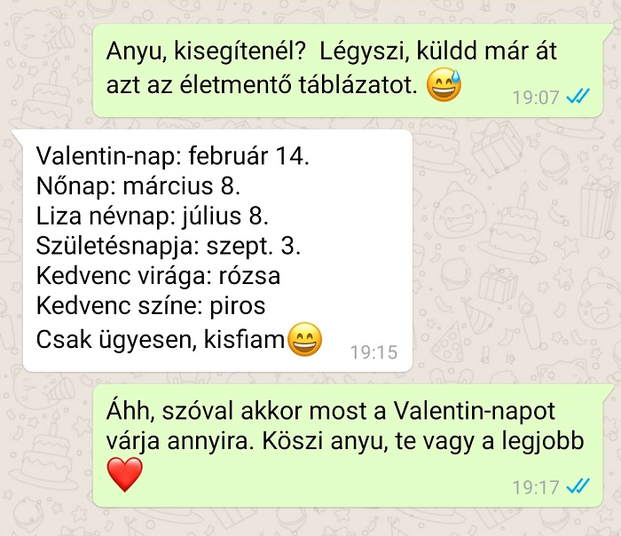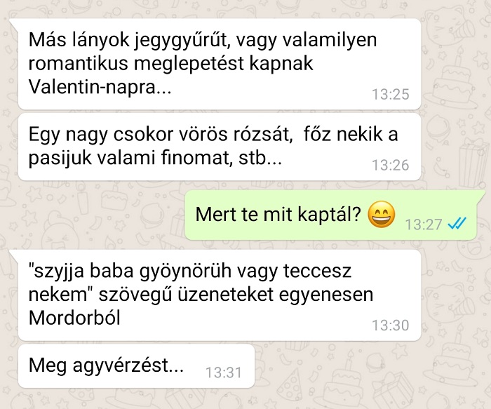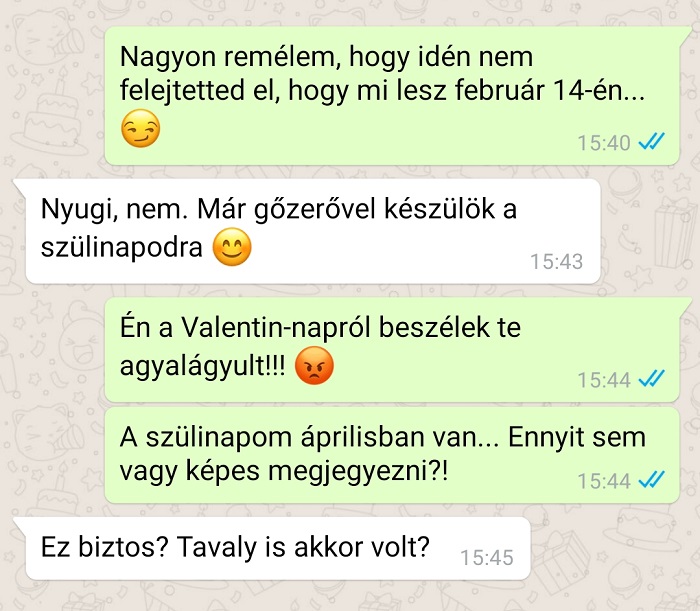 7. Én azért kedvelem február 14-ét, azaz a Valentin-napot, mert másnap féláron lehet szív formájú csokikat vásárolni a boltban.