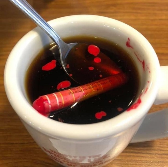 13. Amíg egy pillanatra nem figyeltem, a kisfiam kiderítette, hogy a kávém elég forró-e ahhoz, hogy megolvadjon benne a zsírkréta: