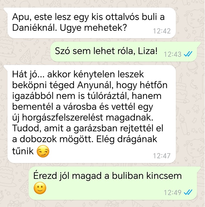 (1.) Az apuka nem most jött le a falvédőről, és egyből leesett neki, hogy mire megy ki a játék.