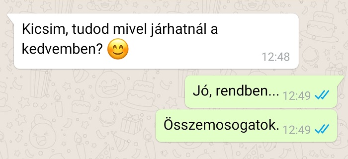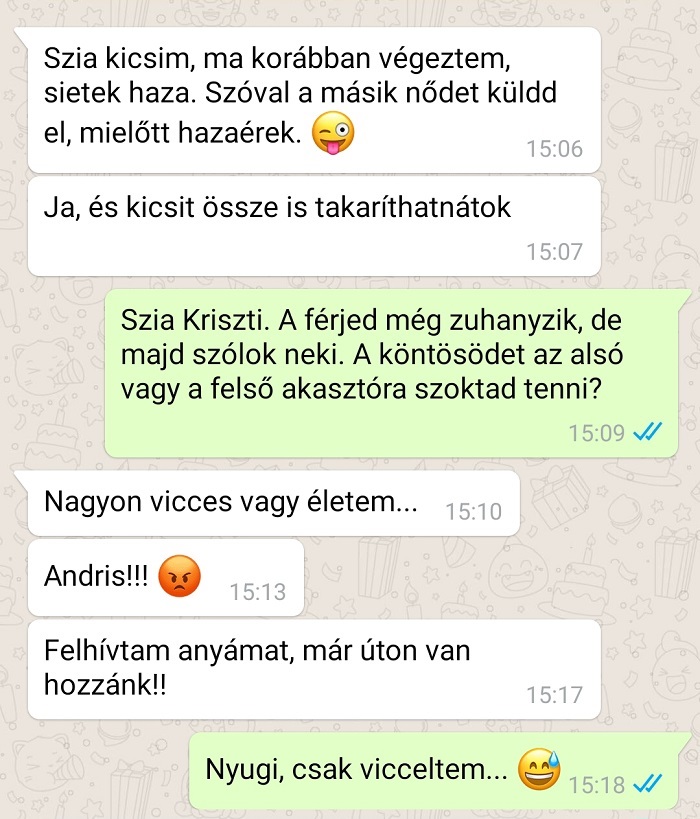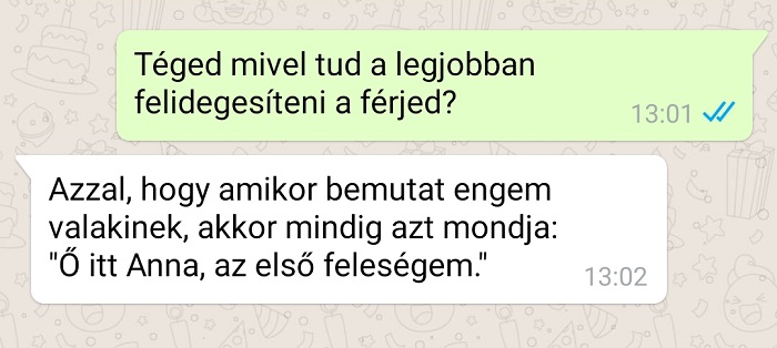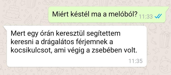 7. Azt egy szóval sem említette a férj, hogy mindketten hivatalosak lennének a partira.