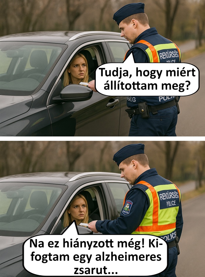 6. Reméljük, hogy az igazoltató rendőrnek egy ilyen szituációban is van humorérzéke, mert ha nem, akkor nem lennénk a hölgy helyében.
