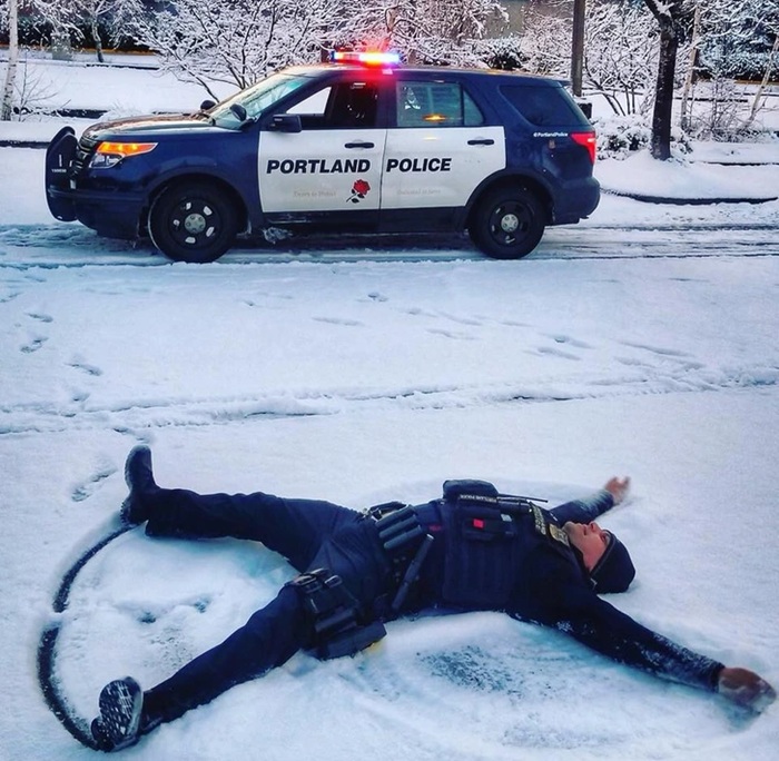 1. A társam annyira megörült a hóesésnek, hogy járőrözés közben meg kellett állnunk hóangyalt csinálni.