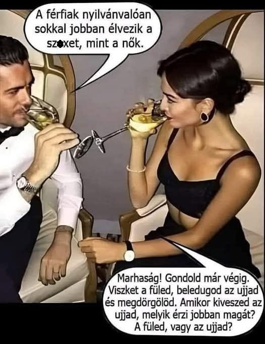 – Hogyne – válaszolt készségesen a nő -, én sz*xuál pszichológus vagyok, és éppen tanulmányt készítek arról, hogy napjainkban kik a legjobb szeretők az ágyban.