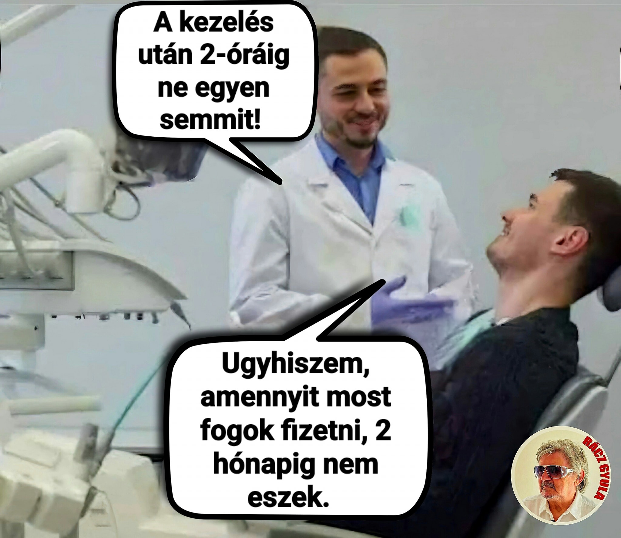 A fogorvos egy gazdag, ám zsugori vállalkozónak készített nagyon drága fogsort. Este meséli a barátainak:– Képzeljétek, ma volt fizetni.