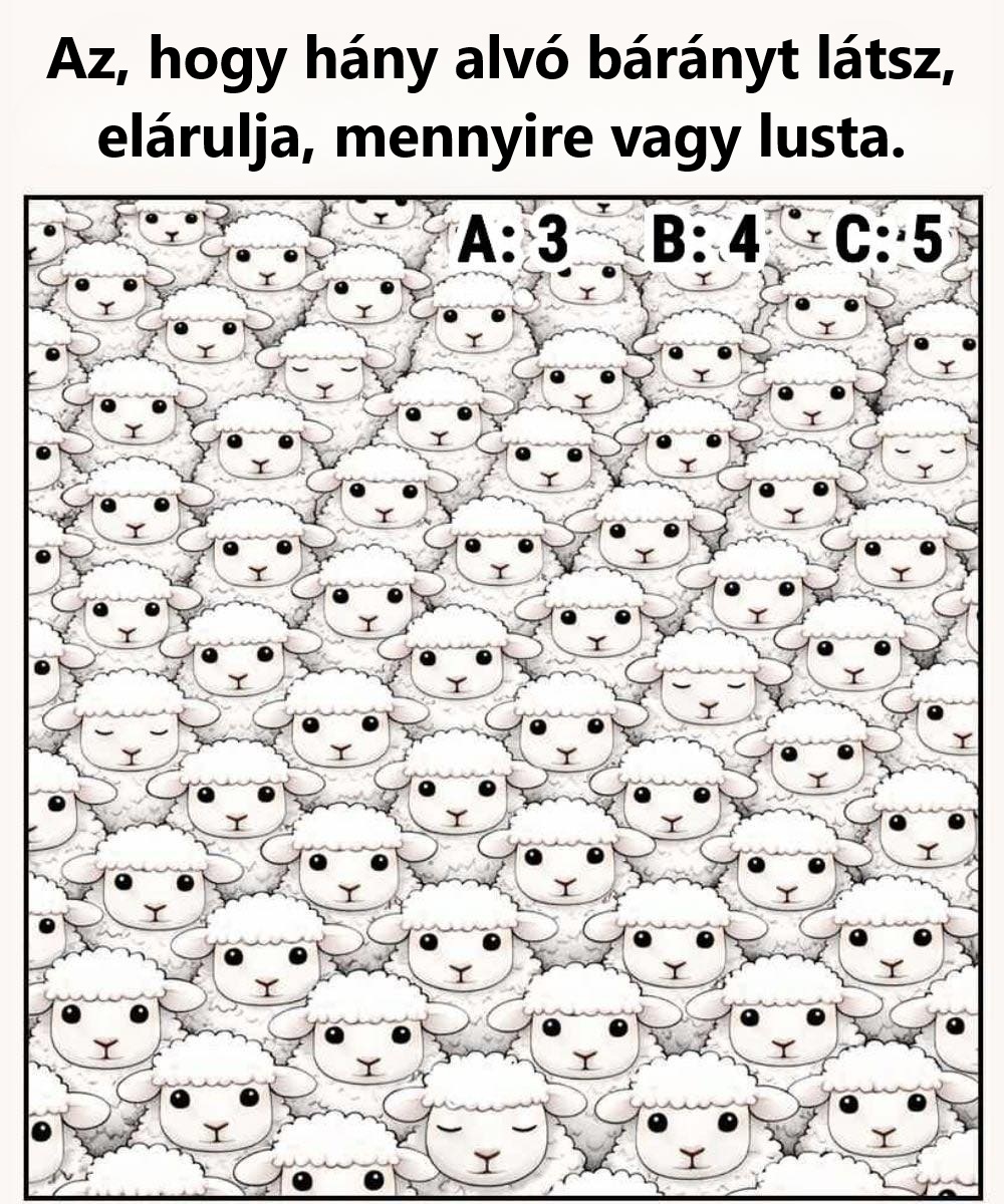 Van, aki háromig jut. Mások gyorsan kiszúrnak négyet. Sőt, néhányan ötöt is magabiztosan megtalálnak. A poénos cím szerint ez „eldönti, lusta vagy-e”, de ezt érdemes a helyén kezelni. Ez egy könnyed agytorna, nem személyiségteszt.