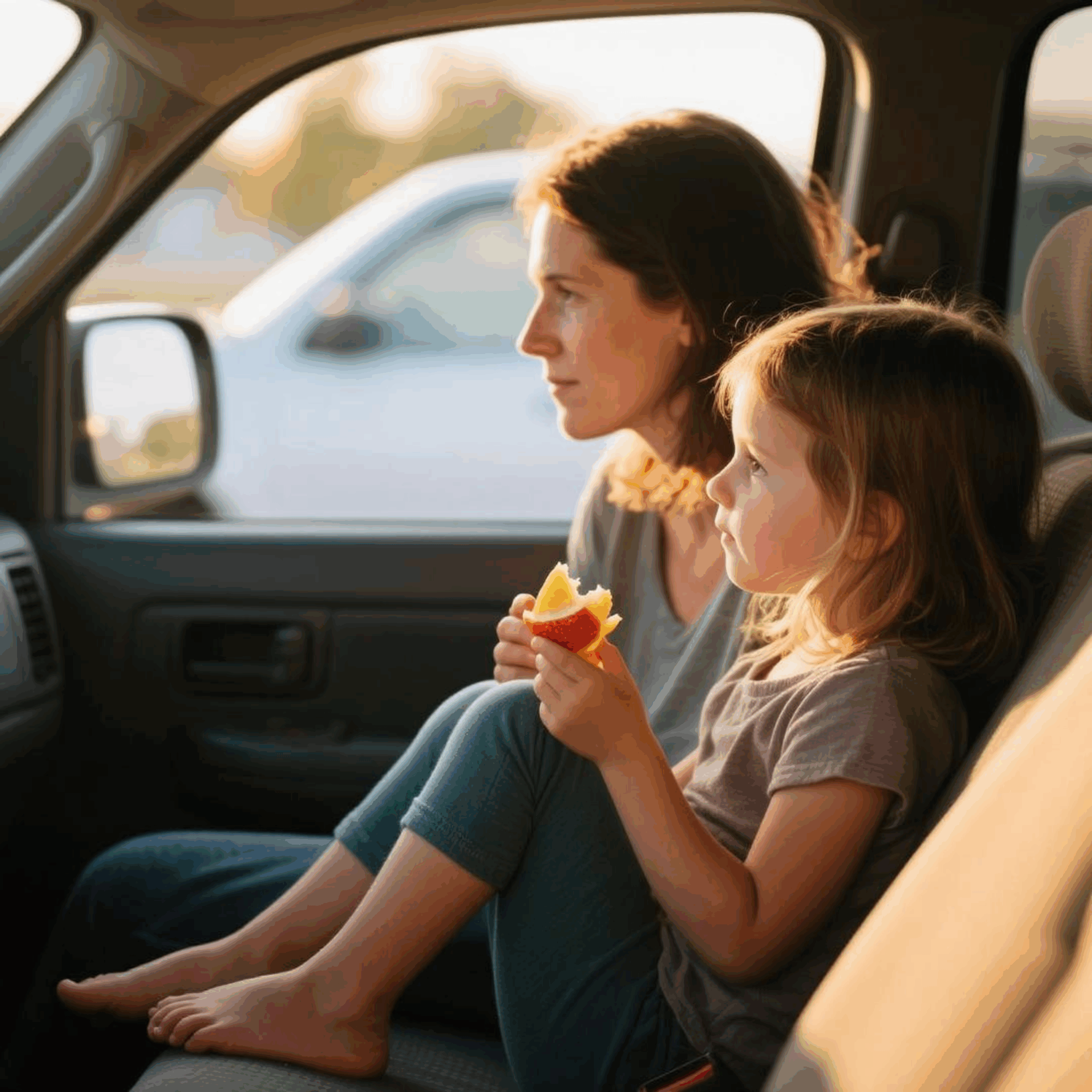 Hazafelé tartottunk az oviból. Tess már lerúgta a cipőjét, egy félig megevett gyümölcsös gumicukor rátapadt a leggingsére, és kifelé bámult az ablakon, mintha az égen úszó felhők titkos üzeneteket írnának neki. A napfény puha, arany csíkokban szűrődött be az üvegen. Csend volt, az a különleges, szinte szent csend, amit csak egy négyéves tud maga körül teremteni.