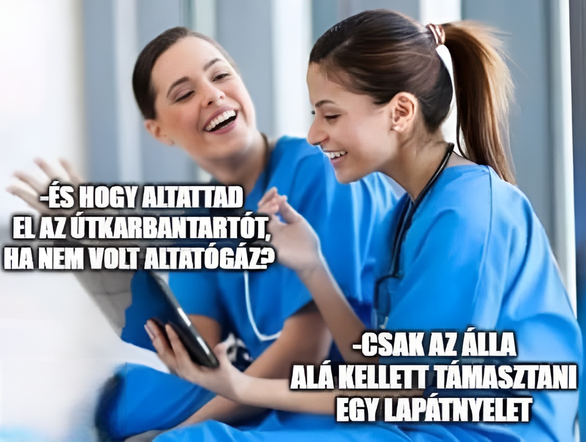 – Alszik már a páciens? – kérdi az operációra érkező sebész az altatóorvost.