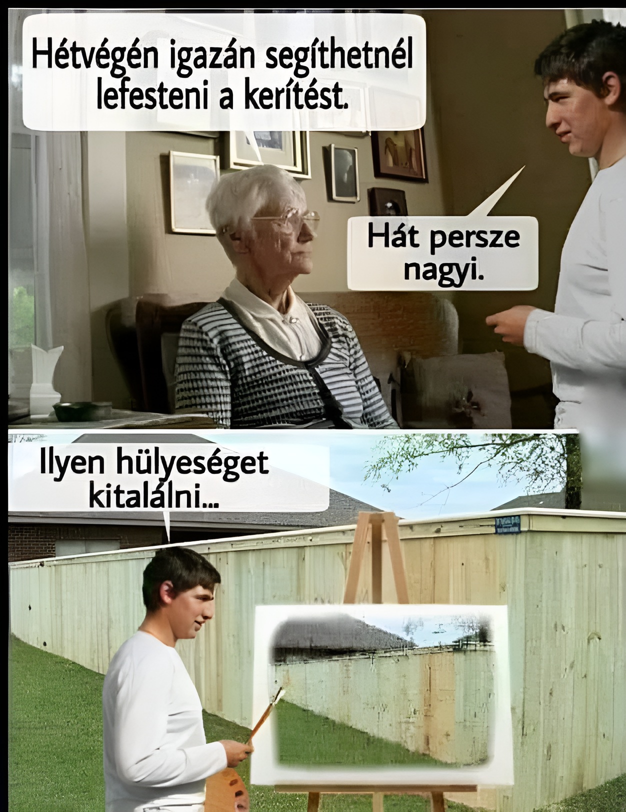 – Jean, miért nem festette csíkosra a kerítést, ahogy kértem?