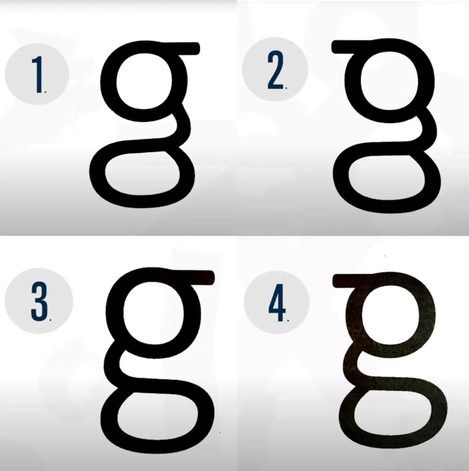 A résztvevőknek ezután egy többválasztásos tesztet adtak, amelyben négy különböző „g” betű közül kellett kiválasztaniuk a helyeset. A 25 résztvevő közül csak heten tudták helyesen azonosítani a hurkos „g”-t.