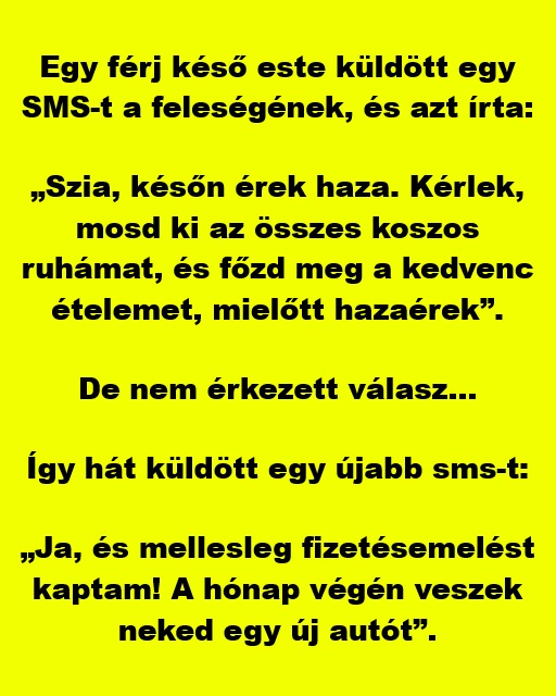 +1 vicc Egyszer, amikor már egy fiú és egy lány régóta jártak, a lány egyszer csak megszólallt egy kellemes délutánt követően: – Ha holnap eljössz hozzánk vacsorára, akkor oda adom neked a szüzességem még holnap este. A srác ennek megörül,…