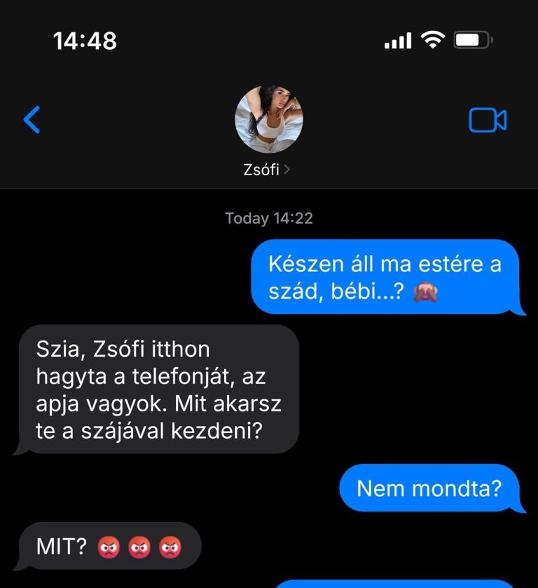 A lány betoppan az ajtón és izgatottan így szól: – Apa, most mondta nekem ezt egy srác, de nem értem… Az apa fölnéz az újságból, ráncolja a szemöldökét: – Na, mi az? Mondd csak, mit mondott? A lány kissé zavarodottan…