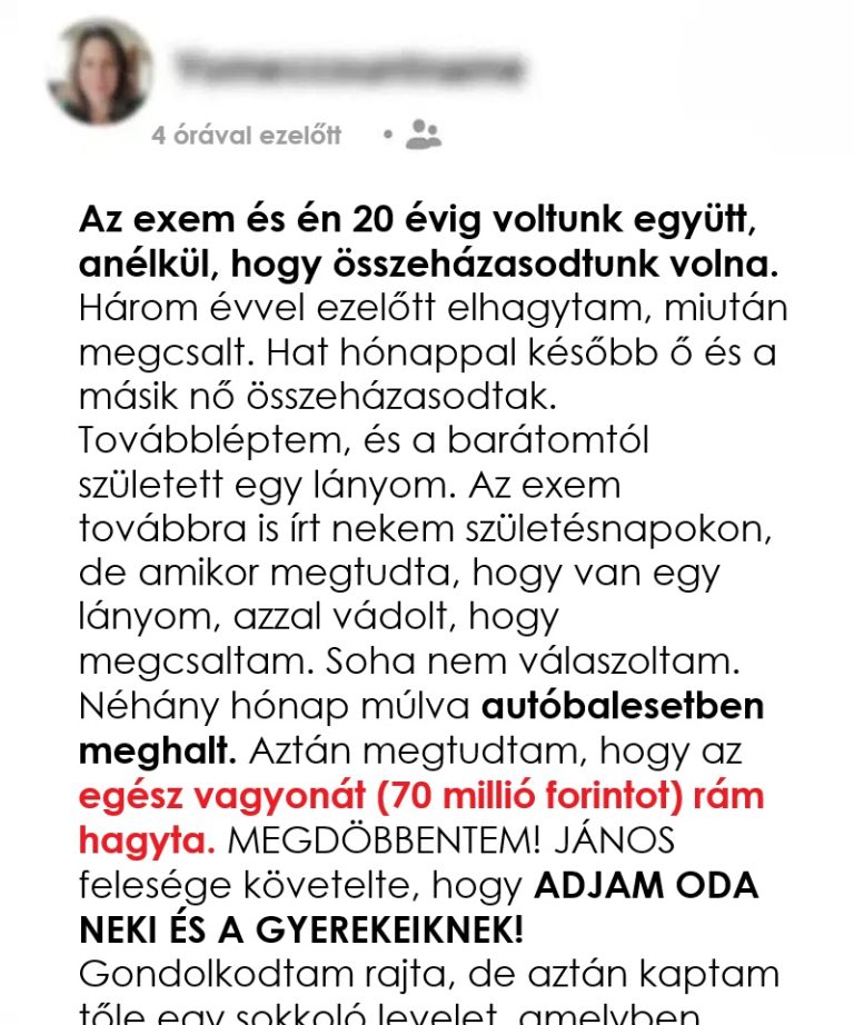 Húsz évig éltünk együtt házasság nélkül. Amikor a kapcsolatunk hűtlenség miatt véget ért, úgy hittem, ez a fejezet lezárult. Ő pár hónap múlva újranősült, én pedig továbbléptem, és találtam egy társat, aki nyugalmat és örömöt hozott az életembe. Nem gondoltam,…