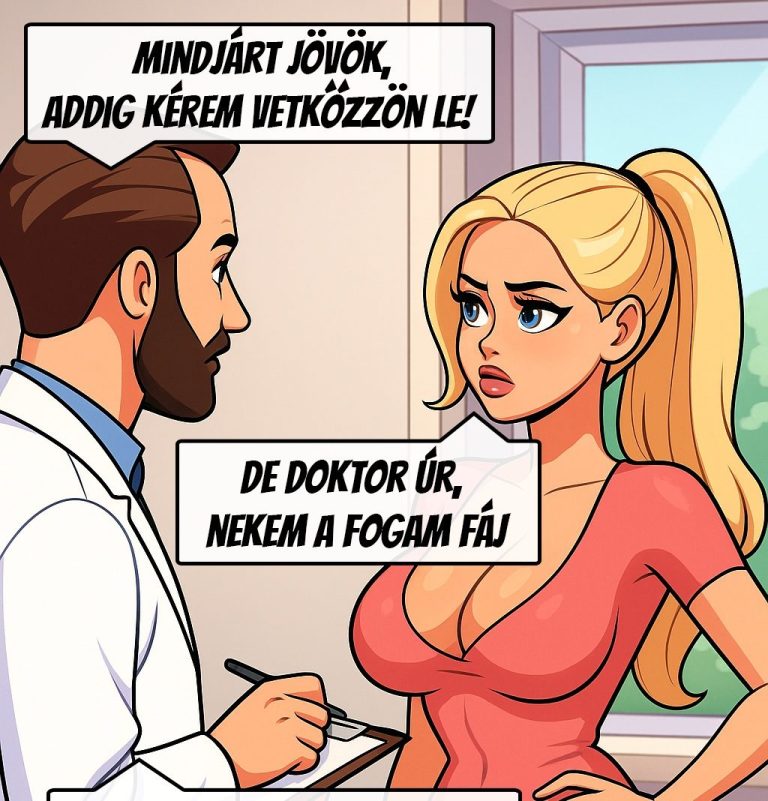 Csinos fiatal nő az orvosnál: – Vetkőzzön le kérem derékig – szól a doktor. A hölgy leveti a blúzát és láthatóvá válik egy vékony aranylánc, rajta parányi repülőgép, amely a két mell között fityeg. – Micsoda remek kis masina! –…
