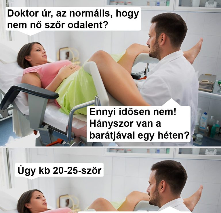Egy szép szőke fiatalasszony életében először keresi fel a nőgyógyászt és elmeséli neki, hogy a férjével családot terveznek. – Már néhány hónapja próbálkozunk, doktor úr, de még nem sikerült teherbe esnem. – mondja szégyellősen. – Nos, biztosan segíthetünk a dolgon.…