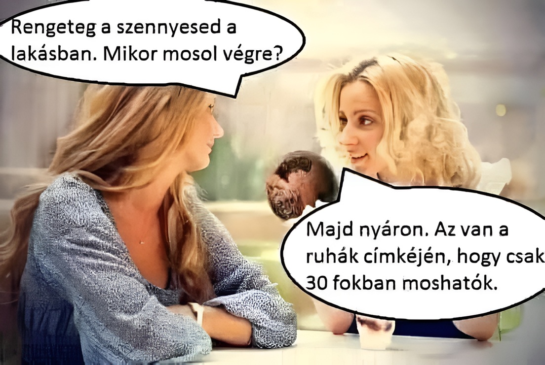 Így megy ez 1 hétig, mikor aztán végre anyuci bújik oda apucihoz és mondja neki: Drágám, mossunk ki géppel…